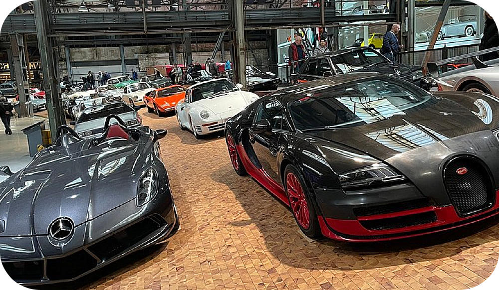 Mercedes-Benz 710 SSK (Anfang 1930er-Jahre), der Bugatti Type 57 Atalante (1935–1938)der Talbot-Lago Type 26 Grand Sport Coupé Saoutchik von 1948, der vollständig original erhalten ist, der Lincoln Continental (1940er -Modell wie John F. Kennedys), der Bentley 4 ½ Litre Team Car, der Mercedes-Benz 300 S Cabriolet A (1951–1955), der Mercedes-Benz 300 SL Coupé Alu (1955/1956, mit Flügeltüren), der Aston Martin DB4 GT Zagato (1960/1961), der Ferrari 412P (1967, North American Racing Team), der Citroën 2CV Sahara 4×4 (1960er). ein Lamborghini Miura SV, ein Ferrari 288 GTO (1984–1986) von Albert Uderzo,ein Mercedes-Benz CLK GTR (1997–1999), der Ferrari F1-2000 - mit dem Michael Schumacher in der Formel-1-Saison 2000 seinen ersten Weltmeistertitel mit Ferrari holte,und der Maybach Exelero von 2005 RAA