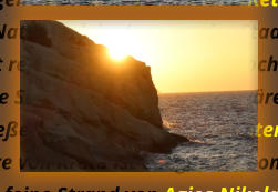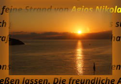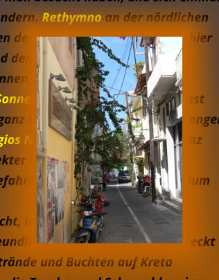 Kreta ist die größte griechische Insel und mit rund 8261 Quadratkilometern Fläche sowie 1066 Kilometern Küstenlänge nach Sizilien, Sardinien, Zypern und Korsika die fünftgrößte Insel im Mittelmeer. An der Südwestküste Kretas sollte man in jedem Falle einmal den Strand von Elafonisibesuchen, es ist ein Strand mit einem ganz besonderen Flair . Im Hafen von Chania bekommt man schon einmal den Eindruck, der durch sie die Altstadt komplett bestätigt wird. Wer Land und Leute im Inneren der Insel kennen lernen will, dem sei ganz lieb das Bergdorf Argiroupolis mit seinen kleinen versteckten Tavernen und seinen Wasserfällen ans Herz gelegt. Die vielen versteckten Klöster in den Felsen auf Kreta sollte man besucht haben, und sich einmal die Zeit nehmen die architecktonischen Meisterleistungen der vergangenen Zeit. Zu bewundern. Rethymno an der nördlichen Küste von Kreta lädt zum Verweilen ein, die dortige alte Festung Den Naturpark im Inneren der Stadt und den Markt - sei hier erwähnt. Iraklion ist eine doch schon es sehe immens große Stadt, mit regem treiben - und dennoch regiert hier das Miteinander. Einige Sehenswürdigkeiten ist Iraklion sehr reich einzelne Sachen hier zu nennen, wäre sehr ungerecht. Es einzigste was zu erwähnen wäre - Zeit nehmen, Zeit nehmen und genießen. Traumhafte Sonneuntergänge ist auf Kreta fast garantiert, und laden zum abheben ein.Agios Nikolaos an der Ostküste von Kreta ist ein ganz besonderer Ort, Mit seinen engen und verwinkelten Gassen, lädt ganz besonders zum Verweilen ein. Der feine Strand von Agios Nikolaos lädt mit seinem ganz exquisiten Flair zum Abkühlen ins glasklaren Nass. Von der Malia Beach geht fast in korrekter des südlicher Richtung eine Straße hinauf ins Gebirge zum Lasithi -Plateau. Dort sollte man die Straße doch einmal gefahren haben, die sich hier rundum diese Hochebene erstreckt..Somit kann man auch mal erfahren das nicht immer nur der größte Konsum glücklich macht, in den kleinen dörflichen Kavernen Wird gemütlich zusammengesessen und sich das Leben genießen lassen. Die freundliche Art dieser Menschen steckt an, schnell wird man dort heimisch und fühlt sich sehr sehr wohl. Speziell irgendwelche Strände und Buchten auf Kreta hervorzuheben würde hier ins unermessliche führen. Ganz speziell möchte ich dennoch an die Taucher und Schnorchler einen Tipp weitergeben, dass Paradise Dive Center an Nordküste von Kreta ist ein absoluter Geheimtip . für solche wie wir es . Mit seiner unscheinbaren Art und Lage wird dies sehr sehr oft übersehen, und ignoriert. Wer dennoch dort einmal war, der hat ganz schnell sein Herz verloren, dort kann man auch für kleines Geld noch eine Liege und einen Platz zu erhaschen und diejenigen die nicht ins Wasser möchten- relaxen können. Aber auch sonst kann man beim Badespaß die Wasserbewohner überall erleben.Anhand meiner Bilder besteht die Möglichkeit sich hier und da noch einen Tipp aus meine Webseite zu bekommen. Nachts hat die Insel den berümten Flair der Griechischen Inseln - da lebt das Leben..Aber ein absoluter TIPP ist und bleibt die Samaria Schlucht, wer diese durchwandern möchte sollte sich auf einiges gefast machen. Wer der Meinung ist dies mit „ lings“ machen zu können und seine Flp Flp`s zu Wanderschuhen um deklariert der wird ganz schnell den Schmerz dieser Entscheidung zu spüren bekommen. Nein es ist (k)ein Spaziergang durch mannshohe Felsen zu gehen, und zwischen den über 100 m hohen Felswänden erleben zu müssen das die Sonne sehr heiß sein kann.