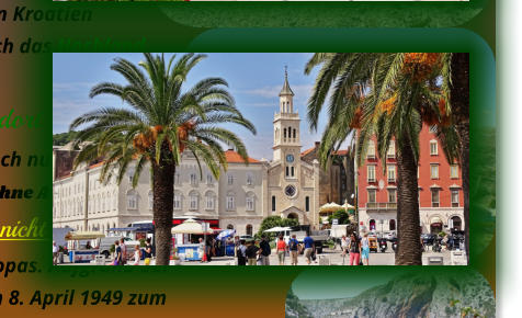 Kroatien ist ein Staat in der Übergangszone zwischen Mittel- und Südosteuropa. Kroatien ist Mitglied der Europäischen Union, der NATO, der Welthandelsorganisation, der OSZE und der Vereinten Nationen. Hauptstadt und größte Stadt ist Zagreb, zu den weiteren Großstädten zählen Split, Rijeka und Osijek. Sandstrände sucht man in Kroatien allerdings relativ vergeblich. Dafür hat man habe die Möglichkeit wenn man zum Schwimmen oder zum Schnorcheln kommt ganz viele Unterwasserwiesen mit einer Unmenge an Getier bewundern zu können. Mit einem kleinen bisschen Glück trifft man sogar auf eine Bucht in dem es noch Schwämme zu bewundern gibt. Vodice oder auch Splitliegen nur unweit entfernt vom National Park Krka, wer diesen im Urlaub nicht besucht hat - der sollte unbedingt zurück nach Kroatien kehren. Diese wunderschönen bewaldete Schlucht mit ihren unendlich Wasserfällen mit kristallklaren Wasser lässt einen in eine zauberhafte Märchenwelt entfliehen. Auch an der Küste hat man stets das Gefühl dass man nicht in Kroatien sondern in eine Welt voller Buchten und Fjorde eingetaucht ist. Wer mit seinem Gefährt einen Tripp durch das Hochland von Dalmatien von Kroatien machen möchte, sollte keinesfalls vorher vergessen bis an den Rand voll zu tanken !!! Tankstellen gibt es dort nirgends. Denn es kann ohne weiteres sein, dass man auf drei- vier- fünf- oder gar 600 km nicht eine Tankstelle auch nur zu Gesicht bekommt. Und das eine sei gewiss - niemand möchte in dieser verkarsteten glühend heißen Landschaft ohne Aussicht auf eine Tankstelle sein. Dennnoch bleibe ich dabei- nehmen sie eine solch Tour in Kauf und sie werden nicht enttäuscht.Der Nationalpark Plitvicer Seen ist der bekannteste und älteste Nationalpark Kroatiens und Südosteuropas. Aufgrund der wissenschaftlichen Erkentnisse und der Tätigkeit des Forschers Ivo Pevalek wurden die Plitvicer Seen am 8. April 1949 zum Nationalpark erklärt. 1979 wurde der Nationalpark Plitvicer Seen als eines der ersten Naturdenkmäler überhaupt in die Liste des UNESCO-Welterbe aufgenommen, und auch diesen sollte man gesehen haben. Dieses sind nur einige wenige Möglichkeiten in Kroatien etwas zu erleben, was man allerdings auch erleben muss - In den meisten Hafenstädten ist der Fischmarkt 24 Stunden am Tag geöffnet - einen fang frischen Fisch vom Holzkohle Grill den zahlte man in jedem Fall einmal probiert haben.Auch wer Lamm, Ziege oder auch Kalb gerne mag, dem es sei einer der vielen Grill`s ist am Straßenrand empfohlen. Und wenn in Kroatien die Sonne gute Nacht sagt, dann beginnt das Leben in den Gassen Straßen und den Stränden. Bei gedämpftem Licht warmen Wind und jede Menge Bier Wein und sonstigen Getränken - kommt man sehr leicht mit den Kroaten ins Gespräch. Der Kroate ist ein sehr geselliger offener und vor allen Dingen ein lebenslustiger einfacher Einwohner einer wunderschönen rustikalen liebevollen Landschaft. Ja es gäbe noch jede Menge und Masse zu zeigen und zu schreiben. Aber was sollte man schreiben, außer das auch in Kroatien nicht alles glänzt was Gold ist. Und sollte man einmal einen rauchigen Geruchin der Nase hat - dann muss es nicht immer der Grill sein.