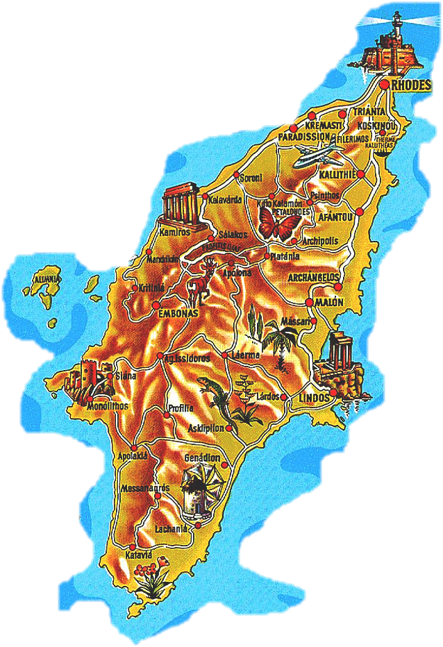 Rhodos, die größte der griechischen Dodekanes Inseln,und ist für ihre Strandorte, antiken Ruinen und Bauwerke aus der Zeit der Besatzung durch die Ritter des Johanniter Ordens während der Kreuzzüge bekannt. Die Altstadt von Rhodos-Stadt ist von der mittelalterlichen Ritterstraßeund dem festungsartigen Großmeisterpalast geprägt. Nach seiner Eroberung durch die Osmanen und der anschließenden italienischen Besatzung beherbergt der Palast heute ein historisches Museum, am MandrakiHafenmachen Schiffe aus aller Welt fest. Es ist auch kein Wunder Rhodos Stadt von ist auch vom Meeraus eine sehr imposant Erhebung. In Rhodos Stadt selbst sollte man in den engen Gassen und Passagen am besten gegen Abend/ Nacht gehen, wenn die Sonne untergegangen ist dann erhebt sich in Rhodos das Leben. Am Rande von Rhodos liegt gut versteckt unter uralten Bäumen versteckt der Rodini Park. In Archangelos (ins Deutsche übersetzt heißt es die = unsichtbare) sollte man nicht vergessen, eine der schönsten Buchten auf Rhodos zu besuchen Die Stegna Beach sie präsentiert sich bei der Anfahrt schon als wunderschönes Fleckchen Erde, für alle die entspannt Sonne und Meer lieben. Dort haben wir auch oft beim Schnorcheln und Tauchen manch schönen Meeresbewohner bewundern können. In Lindos gibt es etwas dass es sonst auf der ganzen Insel nicht mehr gibt, in die Innenstadt ist es leider nicht möglich mit einem Auto zu fahren Zu dicht, zu eng, zu steil sind dort die Gassen- da auch dort es sehr sehr viele Souvienier- Shops sind wirkt das Städtchen Lindo`s mit seinen schneeweisen Häusern noch viel enger. Hoch oben präsentiert sich die Akropolis von Lindos. Auch wenn es eine lange Strecke ist, sollte man es sich nicht nehmen lassen die Südspitze von Rhodos zu besuchen, sofern es das Meer zulässt sollte man die Engstelle überqueren und den Leuchtturm besuchen. Die Aussicht von dort ist phänomenal, genauso ist auch die Aussicht von Rhodos Stadt (Akropolis von Rhodos) auf die Nordspitze von Rhodos denn dort treffen zwei Meere aufeinander. Wer Land und Leute auf Rhodos kennen lernen möchte, und auch eine etwas längere Tour auf der Insel nicht schreckt dem möchte ich das Bergdorf Embona auf Rhodos empfehlen. Dort ist die Zeit stehen geblieben einheimische treffen sich bei Brot und Wein und manch einem Stückchen gegrilltem zu Gesprächen, lachen und feiern. Am Strand von Koustik Beach ist das baden relaxen Rhodos in seiner schönsten Form zu erleben, glasklares Wasser und wunderschöne sanfte Wellen Laden zum Leben ein, ganz besonders sagt dort die Sonne gute Nacht. Ja es ist etwas zu fahren, aber es lohnt in jedem Fall. Epta Piges oder auch das Tal der sieben Quellen ist ein wunderschöner Ort an dem sich sieben Quellen in einem kleinen Fluss treffen, auch bei knalligen Sonnenschein ist es dort sehr schattig und feucht und gut auszuhalten. Lust auf Schmetterlinge...Butterflies Valley Park noch nie im Leben habe ich eine solche Milliarden große Ansammlung von Schmetterlingen gesehen. Es ist ein Wahnsinn, dieses kleine Tal muss etwas ganz besonderes haben das sich eine solche Menge an Schmetterlingen dort ein findet. Aber zurück an die Nordwestküste von Rhodos .... Filerimos Cross und sein gewaltiges Kreuzist immer wieder den Weg hinauf auf dem Berg wert, auch die dortigen Klöster werden jedes viel etliche Trauungen, und weiteres benutzt.Der Ausblick auf die Nordwestküste ist einfach nur phänomenal. Wer eher das baden Schnorcheln oder auch tauchen liebt, dem empfehle ich ganz besonders der Kallithea Strand / Thermen in der Nähe von Rhodos empfohlen aber auch der Weg hinab in die Stegna Beach bleib nicht ohne bleibende Folgen.. Diese sind selbstverständlich nur kleine Auswahl und nur wenige Empfehlungen um auf Rhodos seinen Urlaub zu verbringen, aber es sind wunderschöne Erlebnisse die man dort mit nach Hause nimmt.