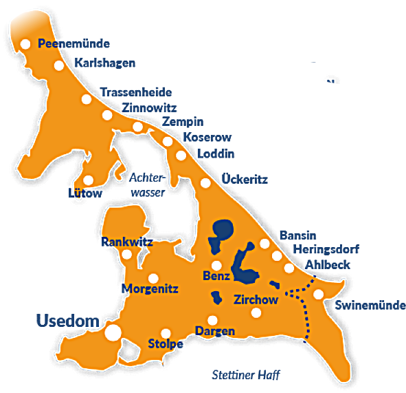Usedom ist eine Insel in der Ostsee. Fast ganz Usedom gehört zu Deutschland, genauer zum Bundesland Mecklenburg-Vorpommern. Der östliche Zipfel von Usedom hingegen liegt in Polen - auf diesem Zipfel liegt die Stadt Swenemünde. Dort sollte man in jedem Falle einmal über den an der Grenze gelegenen Polenmarkt spaziert sein. So ziemlich alles was das Herz begehrt ist dort zu finden, und was ganz viel Spaß macht ist das feilschen. Auch die polnischen Köstlichkeiten fehlen nicht, Gulasch, Spiesbraten und ganz viel mehr zieht einem schon beim vorbeifahren in die Nase.Doch jetzt auf die deutsche Seite der Insel .Bekannt ist Usedom außerdem durch die Gemeinde Peenemünde: Dort hat die deutsche Armee in der Zeit des Nationalsozialismus Raketen ausprobiert. Heute kann man dort noch ein russisches Unterseeboot besichtigen. Bis ins Mittelalter lebten auf der Insel Slawen. Von ihnen stammt der Name der Insel, der wohl so etwas wie Mündung oder Strom im Sinne von Fluss bedeutet. Auf der ganzen Insel leben ca. 70.000 Einwohner. Mehr als die Hälfte davon wohnen auf dem polnischen Teil, vor allem in der Stadt Świnoujście (D) -Swenemünde) . Vor dem Zweiten Weltkrieg gehörte die ganze Insel Usedom zu Deutschland, genauer gesagt zu Preußen. Im Vergleich zu Swinemünde mit 40.000 Einwohnern sind die deutschen Städte und Dörfer viel kleiner. In Zinnowitz leben ca.4000 Menschen dort ist auch die Insel am schmalsten. Noch kleiner ist der Ort Usedom, der den gleichen Namen wie die Insel trägt. Früher lebten die Leute auf der Insel von der Landwirtschaft und der Fischerei. Heutzutage ist dagegen der Tourismusam allerwichtigsten. Die Urlauber mögen die Strände und die Natur, außerdem scheint dort besonders häufig die Sonne. Viel Natur ist unter Naturschutz gestellt. Berüchtigt ist sie durch ihre Mücken die sehr gerne die Nähe des Menschen suchen, doch dagegen ist ein Mittel gefunden. Der Botanische Garten ist was er sein sollte, - Botanik - etwas wild und Natur aber sehr schön für einen Spaziergang und einfach nur, auch das Schmetterlingshaus - einfach nur super. Auch sollte man sich die Zeit nehmen einmal die alte Eisenbahn - Hebebrückeanzuschauen.