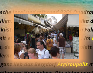 Kreta ist die größte griechische Insel und mit rund 8261 Quadratkilometern Fläche sowie 1066 Kilometern Küstenlänge nach Sizilien, Sardinien, Zypern und Korsika die fünftgrößte Insel im Mittelmeer. An der Südwestküste Kretas sollte man in jedem Falle einmal den Strand von Elafonisibesuchen, es ist ein Strand mit einem ganz besonderen Flair . Im Hafen von Chania bekommt man schon einmal den Eindruck, der durch sie die Altstadt komplett bestätigt wird. Wer Land und Leute im Inneren der Insel kennen lernen will, dem sei ganz lieb das Bergdorf Argiroupolis mit seinen kleinen versteckten Tavernen und seinen Wasserfällen ans Herz gelegt. Die vielen versteckten Klöster in den Felsen auf Kreta sollte man besucht haben, und sich einmal die Zeit nehmen die architecktonischen Meisterleistungen der vergangenen Zeit. Zu bewundern. Rethymno an der nördlichen Küste von Kreta lädt zum Verweilen ein, die dortige alte Festung Den Naturpark im Inneren der Stadt und den Markt - sei hier erwähnt. Iraklion ist eine doch schon es sehe immens große Stadt, mit regem treiben - und dennoch regiert hier das Miteinander. Einige Sehenswürdigkeiten ist Iraklion sehr reich einzelne Sachen hier zu nennen, wäre sehr ungerecht. Es einzigste was zu erwähnen wäre - Zeit nehmen, Zeit nehmen und genießen. Traumhafte Sonneuntergänge ist auf Kreta fast garantiert, und laden zum abheben ein.Agios Nikolaos an der Ostküste von Kreta ist ein ganz besonderer Ort, Mit seinen engen und verwinkelten Gassen, lädt ganz besonders zum Verweilen ein. Der feine Strand von Agios Nikolaos lädt mit seinem ganz exquisiten Flair zum Abkühlen ins glasklaren Nass. Von der Malia Beach geht fast in korrekter des südlicher Richtung eine Straße hinauf ins Gebirge zum Lasithi -Plateau. Dort sollte man die Straße doch einmal gefahren haben, die sich hier rundum diese Hochebene erstreckt..Somit kann man auch mal erfahren das nicht immer nur der größte Konsum glücklich macht, in den kleinen dörflichen Kavernen Wird gemütlich zusammengesessen und sich das Leben genießen lassen. Die freundliche Art dieser Menschen steckt an, schnell wird man dort heimisch und fühlt sich sehr sehr wohl. Speziell irgendwelche Strände und Buchten auf Kreta hervorzuheben würde hier ins unermessliche führen. Ganz speziell möchte ich dennoch an die Taucher und Schnorchler einen Tipp weitergeben, dass Paradise Dive Center an Nordküste von Kreta ist ein absoluter Geheimtip . für solche wie wir es . Mit seiner unscheinbaren Art und Lage wird dies sehr sehr oft übersehen, und ignoriert. Wer dennoch dort einmal war, der hat ganz schnell sein Herz verloren, dort kann man auch für kleines Geld noch eine Liege und einen Platz zu erhaschen und diejenigen die nicht ins Wasser möchten- relaxen können. Aber auch sonst kann man beim Badespaß die Wasserbewohner überall erleben.Anhand meiner Bilder besteht die Möglichkeit sich hier und da noch einen Tipp aus meine Webseite zu bekommen. Nachts hat die Insel den berümten Flair der Griechischen Inseln - da lebt das Leben..Aber ein absoluter TIPP ist und bleibt die Samaria Schlucht, wer diese durchwandern möchte sollte sich auf einiges gefast machen. Wer der Meinung ist dies mit „ lings“ machen zu können und seine Flp Flp`s zu Wanderschuhen um deklariert der wird ganz schnell den Schmerz dieser Entscheidung zu spüren bekommen. Nein es ist (k)ein Spaziergang durch mannshohe Felsen zu gehen, und zwischen den über 100 m hohen Felswänden erleben zu müssen das die Sonne sehr heiß sein kann.