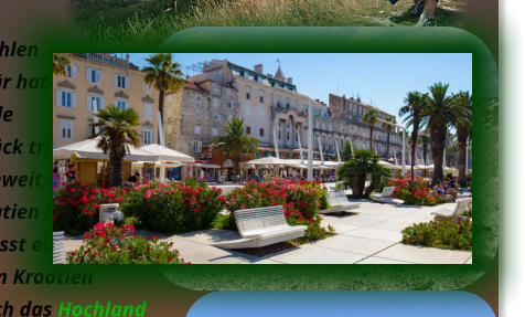 Kroatien ist ein Staat in der Übergangszone zwischen Mittel- und Südosteuropa. Kroatien ist Mitglied der Europäischen Union, der NATO, der Welthandelsorganisation, der OSZE und der Vereinten Nationen. Hauptstadt und größte Stadt ist Zagreb, zu den weiteren Großstädten zählen Split, Rijeka und Osijek. Sandstrände sucht man in Kroatien allerdings relativ vergeblich. Dafür hat man habe die Möglichkeit wenn man zum Schwimmen oder zum Schnorcheln kommt ganz viele Unterwasserwiesen mit einer Unmenge an Getier bewundern zu können. Mit einem kleinen bisschen Glück trifft man sogar auf eine Bucht in dem es noch Schwämme zu bewundern gibt. Vodice oder auch Splitliegen nur unweit entfernt vom National Park Krka, wer diesen im Urlaub nicht besucht hat - der sollte unbedingt zurück nach Kroatien kehren. Diese wunderschönen bewaldete Schlucht mit ihren unendlich Wasserfällen mit kristallklaren Wasser lässt einen in eine zauberhafte Märchenwelt entfliehen. Auch an der Küste hat man stets das Gefühl dass man nicht in Kroatien sondern in eine Welt voller Buchten und Fjorde eingetaucht ist. Wer mit seinem Gefährt einen Tripp durch das Hochland von Dalmatien von Kroatien machen möchte, sollte keinesfalls vorher vergessen bis an den Rand voll zu tanken !!! Tankstellen gibt es dort nirgends. Denn es kann ohne weiteres sein, dass man auf drei- vier- fünf- oder gar 600 km nicht eine Tankstelle auch nur zu Gesicht bekommt. Und das eine sei gewiss - niemand möchte in dieser verkarsteten glühend heißen Landschaft ohne Aussicht auf eine Tankstelle sein. Dennnoch bleibe ich dabei- nehmen sie eine solch Tour in Kauf und sie werden nicht enttäuscht.Der Nationalpark Plitvicer Seen ist der bekannteste und älteste Nationalpark Kroatiens und Südosteuropas. Aufgrund der wissenschaftlichen Erkentnisse und der Tätigkeit des Forschers Ivo Pevalek wurden die Plitvicer Seen am 8. April 1949 zum Nationalpark erklärt. 1979 wurde der Nationalpark Plitvicer Seen als eines der ersten Naturdenkmäler überhaupt in die Liste des UNESCO-Welterbe aufgenommen, und auch diesen sollte man gesehen haben. Dieses sind nur einige wenige Möglichkeiten in Kroatien etwas zu erleben, was man allerdings auch erleben muss - In den meisten Hafenstädten ist der Fischmarkt 24 Stunden am Tag geöffnet - einen fang frischen Fisch vom Holzkohle Grill den zahlte man in jedem Fall einmal probiert haben.Auch wer Lamm, Ziege oder auch Kalb gerne mag, dem es sei einer der vielen Grill`s ist am Straßenrand empfohlen. Und wenn in Kroatien die Sonne gute Nacht sagt, dann beginnt das Leben in den Gassen Straßen und den Stränden. Bei gedämpftem Licht warmen Wind und jede Menge Bier Wein und sonstigen Getränken - kommt man sehr leicht mit den Kroaten ins Gespräch. Der Kroate ist ein sehr geselliger offener und vor allen Dingen ein lebenslustiger einfacher Einwohner einer wunderschönen rustikalen liebevollen Landschaft. Ja es gäbe noch jede Menge und Masse zu zeigen und zu schreiben. Aber was sollte man schreiben, außer das auch in Kroatien nicht alles glänzt was Gold ist. Und sollte man einmal einen rauchigen Geruchin der Nase hat - dann muss es nicht immer der Grill sein.
