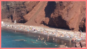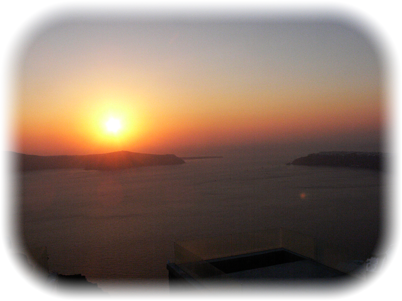 Strand- und Badeurlauben einladen.Die meisten Touristen steuern Santorin per Fähre an. Zusätzlich gibt es auch, im Gegensatz zu den meisten anderen Inseln der Kykladen, einen internationalen Flughafen auf Santorin, wo auch die großen Charterflugzeuge landen können und Urlauber aus aller Welt direkt auf die Insel bringen. Das glasklare Wasser im Inneren des Kraters lädt förmlich schon zum Baden und zum Tauchen Schnorcheln ein. Dadurch Idee ist das Innere fast Kreis rund von Felsen umrandet ist ist auch der Wellengang im Inneren sehr gering. Die Hauptstadt Fira und die nördlichste Oia schmiegen sich wie Siedlungen aus Tausendundeiner Nacht an die Felsen. Beide Städte kann man auch von den Häfen aus mit einer Seilbahn oder aber mit Eseln erreichen(!) . Wer einmal das Flair in den engen Gassen der Städte von Santorini erlebt hat,und in den Tavernen es sich hat gut gehen lassen - Der möchte dort niewieder weg. Ob der Weise- ( White Beach) oder der rote Strand (Redbeach), oder auch all die anderen Strände ihre ausgiebig zu beschreiben das wäre schlichtweg unmöglich. Überall wo man Baden oder auch schwimmen kann mit Glas klares Wasser und ein magischer Wellengang zum Entspannen ein. Wer im südlichen Westen der Insel am Leuchtturm Akrotirigestanden hat, und die Ferne des Meeres hat auf sich einwirken lassen - dem brauche ich Santorini nicht mehr zu beschreiben. Da ich aber im Moment gerade über Akrotiri schreibe möchte ich nicht vergessen, in Akrotiri selbst ist eine der größten Grabungsbereiche Griechenlands. Wer ein Mal ein ganz besonderes Panorama erleben möchte dem empfehle ich, zum Athinios Ferry Port hinunter zu fahren - und unterwegs auf einem der vielen Parkplätze anzuhalten und links und rechts die Insel zu erleben, seinen Schatz ganz fest in die Arme schließen und - einfach NUR da sein. Dieses Panorama wird sich bis in die engsten Windungen deiner grauen Zellen unauslöschlich verewigen. Und nun zu dem Moment auf den schon viele 100 000 Besucher der Insel gewartet haben, ich versuche so gut wie unmöglich einen Sonnenuntergang über Santorini in Buchstaben zu fassen man stelle sich eine..... ich habe es versucht aber es geht nicht - mir fehlen schlichtweg die Worte um eine solche Atmosphäre und eine solche Situation in Buchstaben niederzuschreiben - deshalb wer ein kleines bisschen mit in den Sonnenuntergang möchte und zu guter Letzt ein Rat - nicht der Insel Adieu sagen - denn du bist für alle Zeit verloren