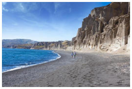 Schon beim Anflug auf Santorini eröffnet sich dem Fluggast einem märchenhafte Kulisse, ja schon im Anflug hat man das Gefühl dass man hier auf etwas ganz ganz besonderes treffen wird. Schon der Blick auf den Kraterrand lässt erahnen dass die Natur hier eine magische Perle geschaffen hat. Santorin ist die südlichste Insel der Kykladen und wird in Griechenland meist Santorini oder Thira genannt. Die sichelförmige Form von Santorin ist durch mehrere Vulkanausbrüche entstanden. Der letzte Ausbruch war vor über 3600 Jahren. Zusammen mit den Inseln Aspronisi und Thirasia bildet Santorin die Caldera. Die Caldera von Santorin ist zum Teil über 365 Meter tief und bis zu 300 Meter hoch und fällt größtenteils steil ab. Santorin ist durch die bis zu 300 Meter hohen Kraterwände eine der ungewöhnlichsten Inseln der Welt. Einige Orte auf Santorin, wie Fira und Oiasind zum Teil direkt in die Steilhänge der Caldera gebaut. Diese Orte bilden nicht nur vom Meer aus eine grandiose Kulisse, sondern auch in den Orten bietet sich den Besuchern ein wahnsinnig faszinierender Blick. Die Insel Santorin gehört seit vielen Jahren zu einer der meist besuchten Inseln der Kykladen. Das liegt an den atemberaubenden Orten an der Caldera, aber auch an den faszinierend vielfältigen Stränden von Santorin, die zu